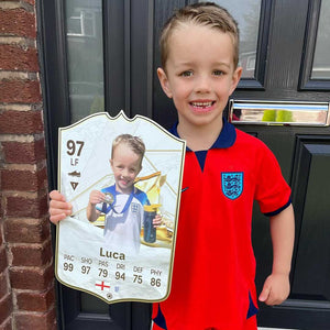 Add your own photo, name, club, and stats with our easy online tool. Our expert designers will do the rest!