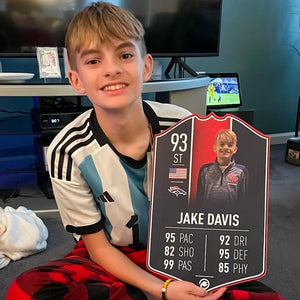 Ever since my son was a little guy, he's been all about gaming, especially football and war games. When I stumbled upon the Cardsplug ad, it hit me instantly – I had to grab that football card showcasing his face, with stats maxed out at 99. Christmas rolled around, and he was genuinely thrilled with his gift. Despite being a bit shy, he couldn't hide his joy. The whole CardsPlug concept is fantastic, and he's absolutely in love with it. ❤