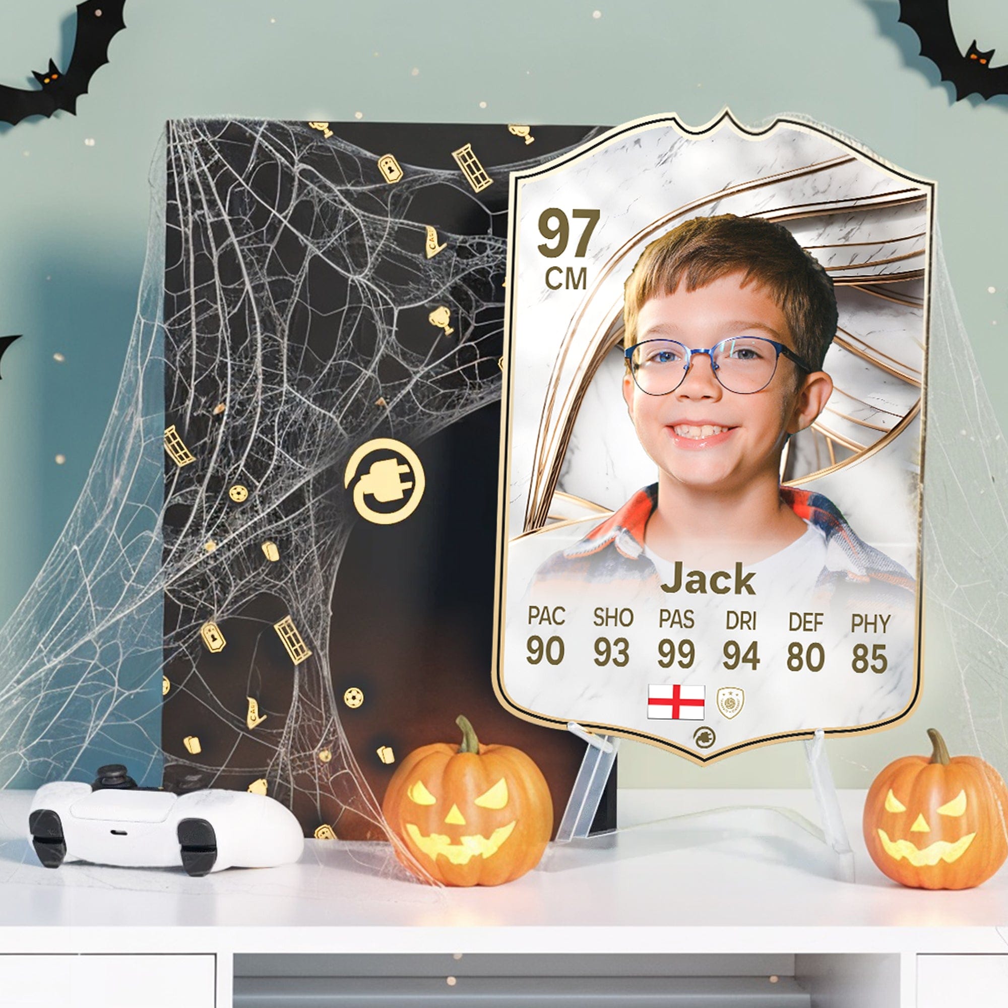 When it comes to personalising your card, the basic steps are to upload a photo and add a name to your card. Then you’ll add details like your player’s position and skill ratings out of 99 for each football skill shown on the card. Our online card builder makes this really easy. And if you aren’t a football card expert, don’t worry!