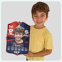 Our football card builder lets you choose between two different card materials. Our Standard cards are made of a ultra-strong variety of Foamex (not cardboard or foam!). This material has a lovely gloss finish and is also super durable. Our world-exclusive Metal football cards have a matte finish and are slightly heavier. Both look amazing and will last forever.