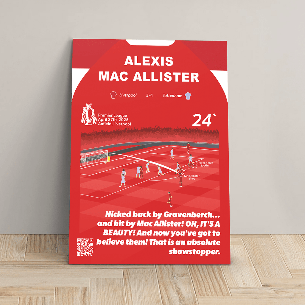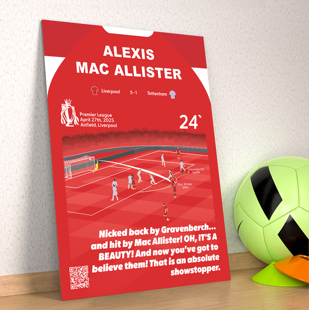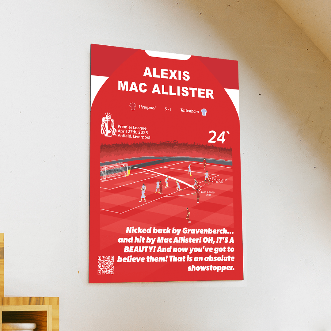 Match moments are the perfect way to forge unforgettable football moments onto a metal poster so they can be with you forever. All match moments include our unique QRGoal feature which lets you rewatch the moment at any time.