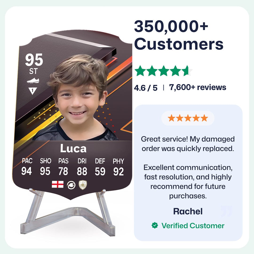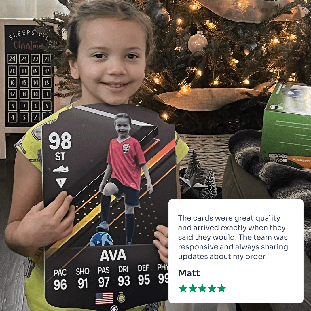 Yes! Our football card designers will remove the background from the photo you upload so it looks just like the football cards you might’ve seen games like EA FC 25, EA FC 24 or FIFA. We’ll also position the photo perfectly on the football card so it looks great. If there are any problems with the quality of your photo, we’ll reach out and let you know. Plus, our website's AI will remove the background on the image for visual purposes before purchase so you can see it without a background on the card.