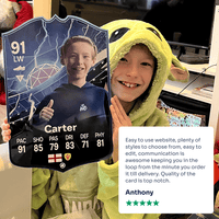 Once you’ve personalised your card, our design experts will edit your photo, design your card, and bring it to life in stunning quality. You’ll get a full preview before we print your card and every card’s quality is backed by our Gold Standard Guarantee. So far, over 350,000+ football fans agree: A CardsPlug football card is the ultimate football gift!