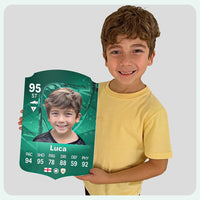 Our football card builder lets you choose between two different card materials. Our Standard cards are made of a ultra-strong variety of Foamex (not cardboard or foam!). This material has a lovely gloss finish and is also super durable. Our world-exclusive Metal football cards have a matte finish and are slightly heavier. Both look amazing and will last forever.