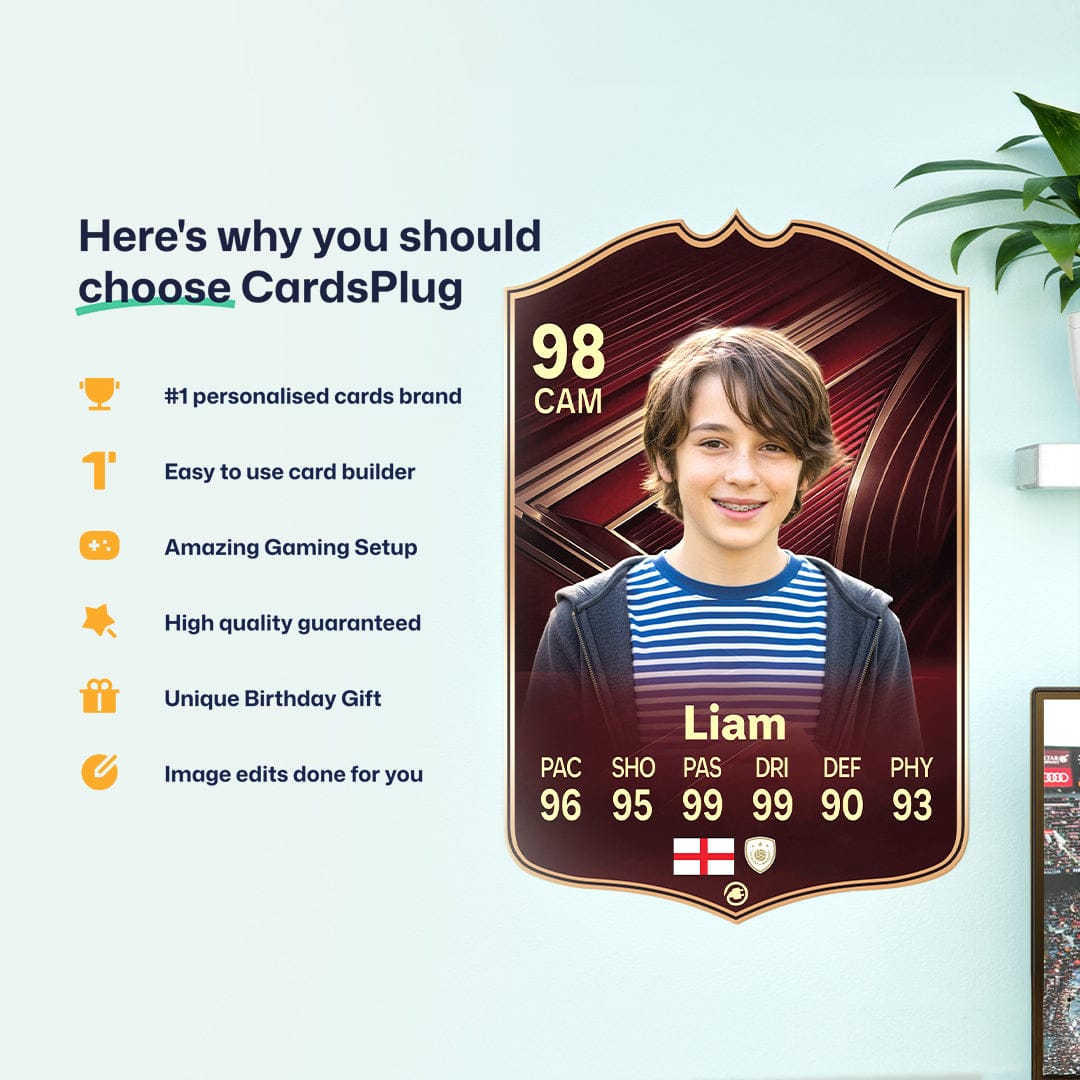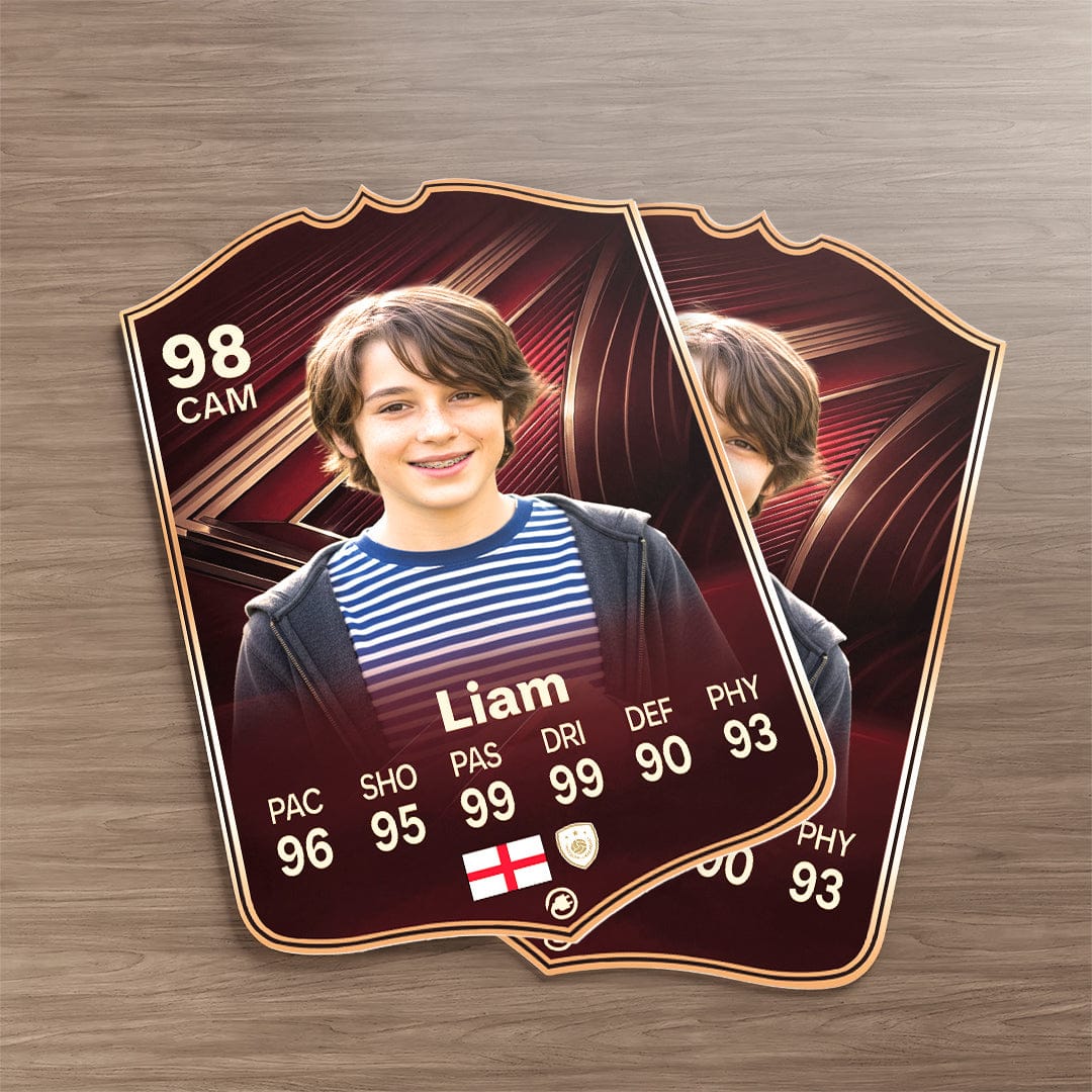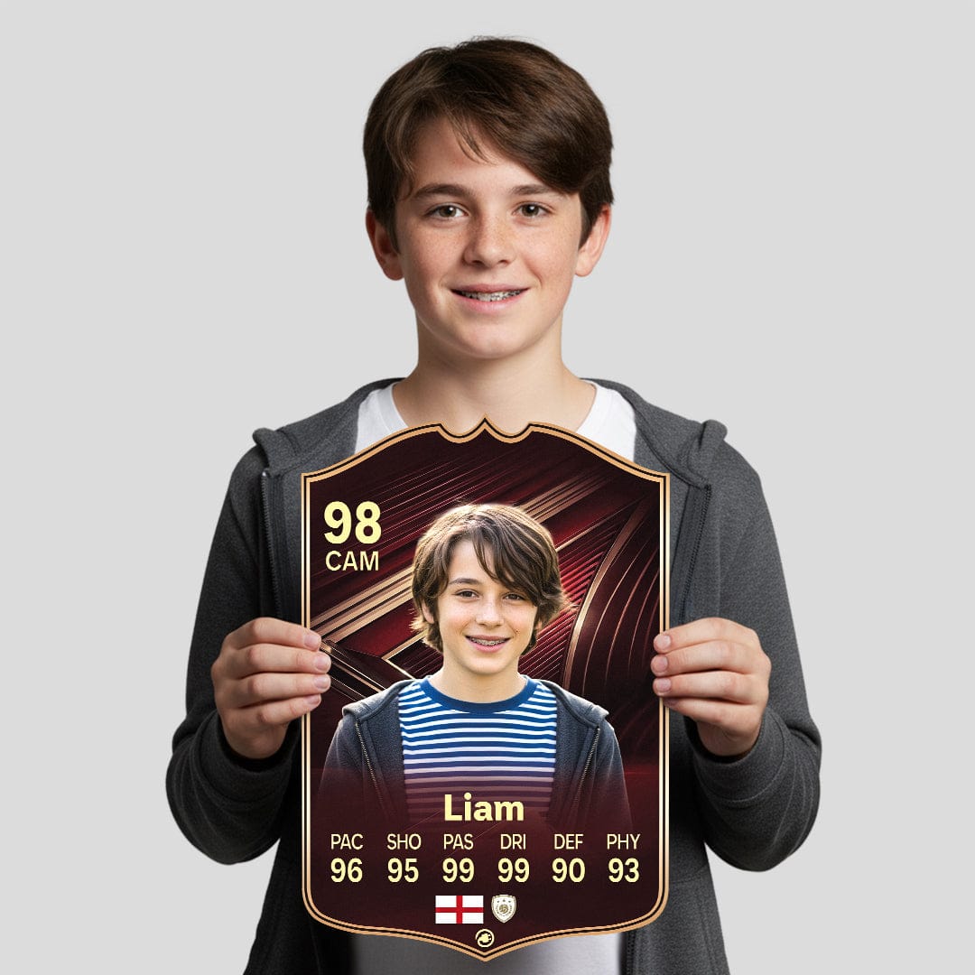 CardsPlug is home to the world’s favourite personalised football cards. Our easy football card builder lets you make a real life football card with your own name, photo, and skill ratings. With 100+ designs to choose from and some inspired by EA SPORTS FC 26 cards seen in EA FC 26, EA FC 25 and FC 24 as well as FIFA cards seen in games like FIFA 23 and FIFA 22.