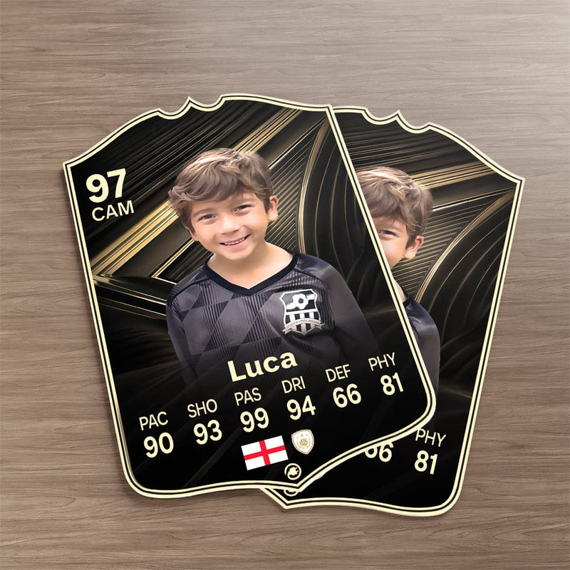 CardsPlug is home to the world’s favourite personalised football cards. Our easy football card builder lets you make a real life football card with your own name, photo, and skill ratings. With 100+ designs to choose from and some inspired by EA SPORTS FC 26 cards seen in EA FC 26, EA FC 25 and FC 24 as well as FIFA cards seen in games like FIFA 23 and FIFA 22.