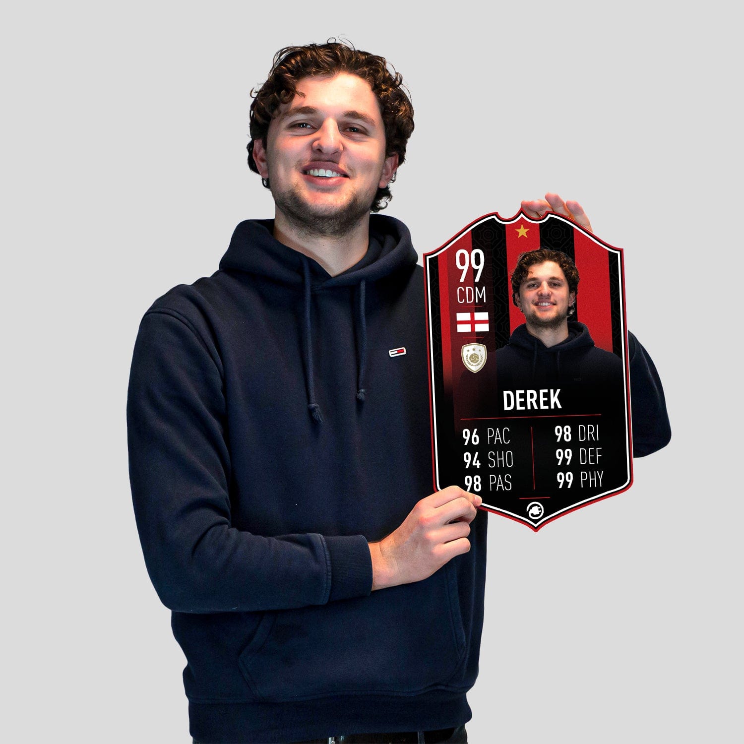 Yes! Our football card designers will remove the background from the photo you upload so it looks just like the football cards you might’ve seen games like EA FC 25, EA FC 24 or FIFA. We’ll also position the photo perfectly on the football card so it looks great. If there are any problems with the quality of your photo, we’ll reach out and let you know. Plus, our website's AI will remove the background on the image for visual purposes before purchase so you can see it without a background on the card.
