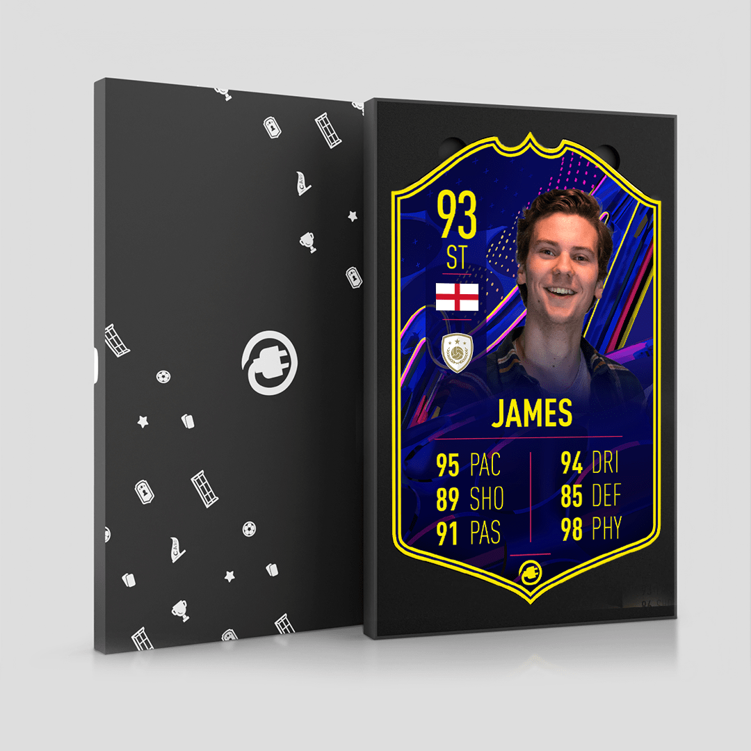 When it comes to personalising your card, the basic steps are to upload a photo and add a name to your card. Then you’ll add details like your player’s position and skill ratings out of 99 for each football skill shown on the card. Our online card builder makes this really easy. And if you aren’t a football card expert, don’t worry!
